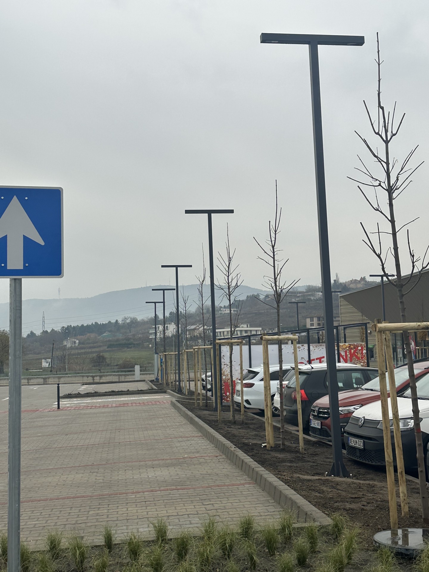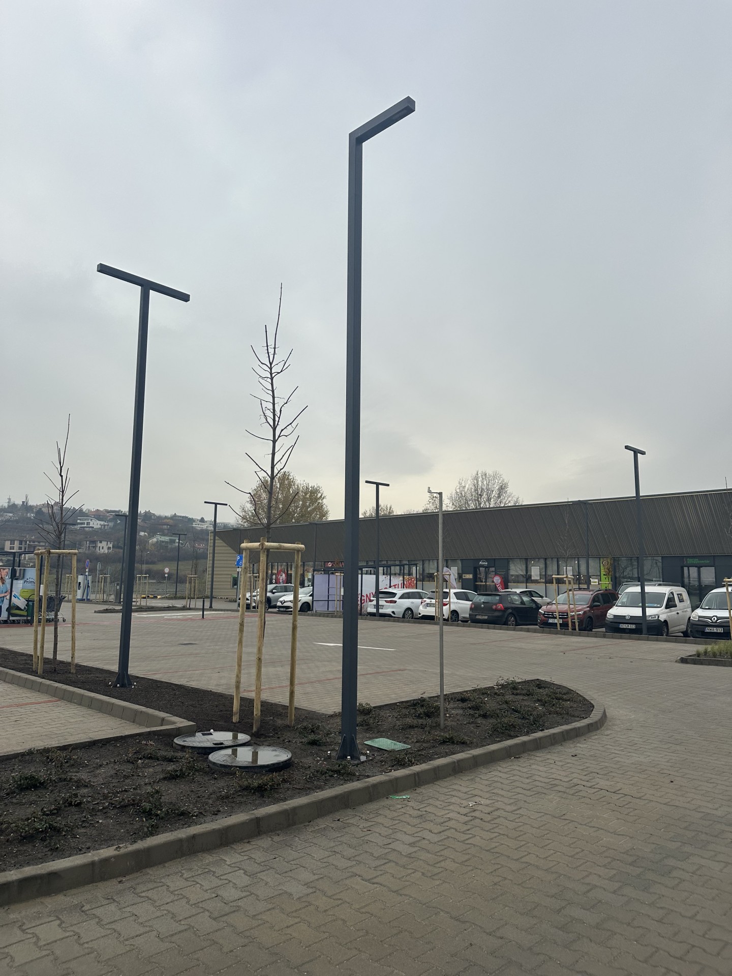 PRIMA-Aranyhegy Kültéri egyedi lámpatestek Egyedi letisztult formavilág. Egyedi gyártás. Teljes kandeláber család egy területen a szabványos parkoló, és parkoló út világítás megvalósítása érdekében. Az épület oldlafalára szerelve és a 6m magasságú egy, két és háromágú kandeláberek.